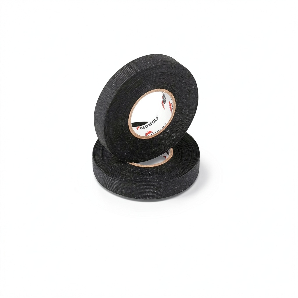 RED WOLF black cloth electrical tape is engineered for superior performance in electrical and automotive applications. Made from high-quality polyester non-woven fabric and strong acrylic pressure-sensitive adhesive, this tape offers exceptional durability and resistance to corrosion. It measures 50 feet in length, 0.6 inches in width, and 0.03 mm in thickness, providing ample coverage for various projects. With a waterproof rating and high-temperature tolerance, it ensures reliable insulation and protection. The tape is designed to enhance sound and rattle dampening, making it a trusted choice for professionals and DIY enthusiasts alike. Its soft material and strong stickiness improve over time, ensuring long-lasting hold without residue.