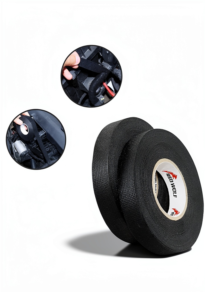 This electrical tape is ideal for automotive interiors, particularly for wire harnesses in dashboard and engine compartments where noise reduction is critical. It is also suitable for industrial settings, electrical equipment maintenance, and home DIY projects involving wiring insulation. Target users include automotive technicians, electricians, and hobbyists who require a dependable tape for bundling, protecting, and organizing cables. Its compatibility with cloth surfaces and acrylic materials makes it versatile for diverse environments, from vehicle repairs to electrical installations.